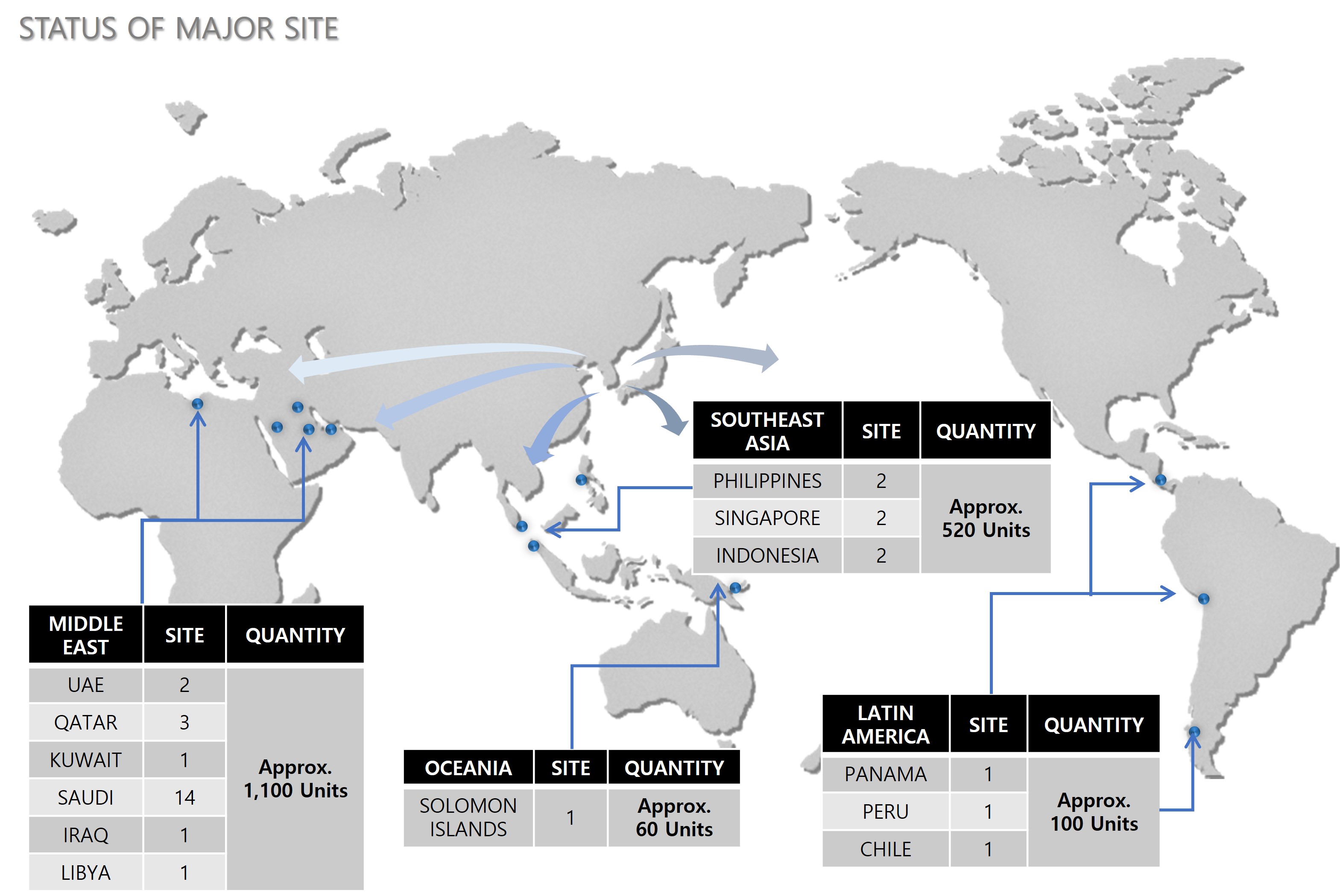 across over 40 construction sites in 16 countries, along with parts supply and repair consulting.